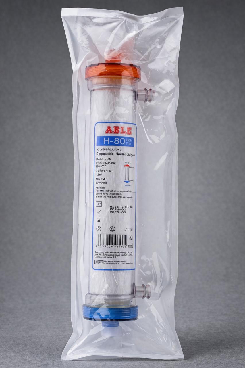 Высокопоточный одноразовый диализатор для проведения гемодиализа. Обеспечивает эффективную очистку крови и стабильную работу благодаря мембране из полисульфона